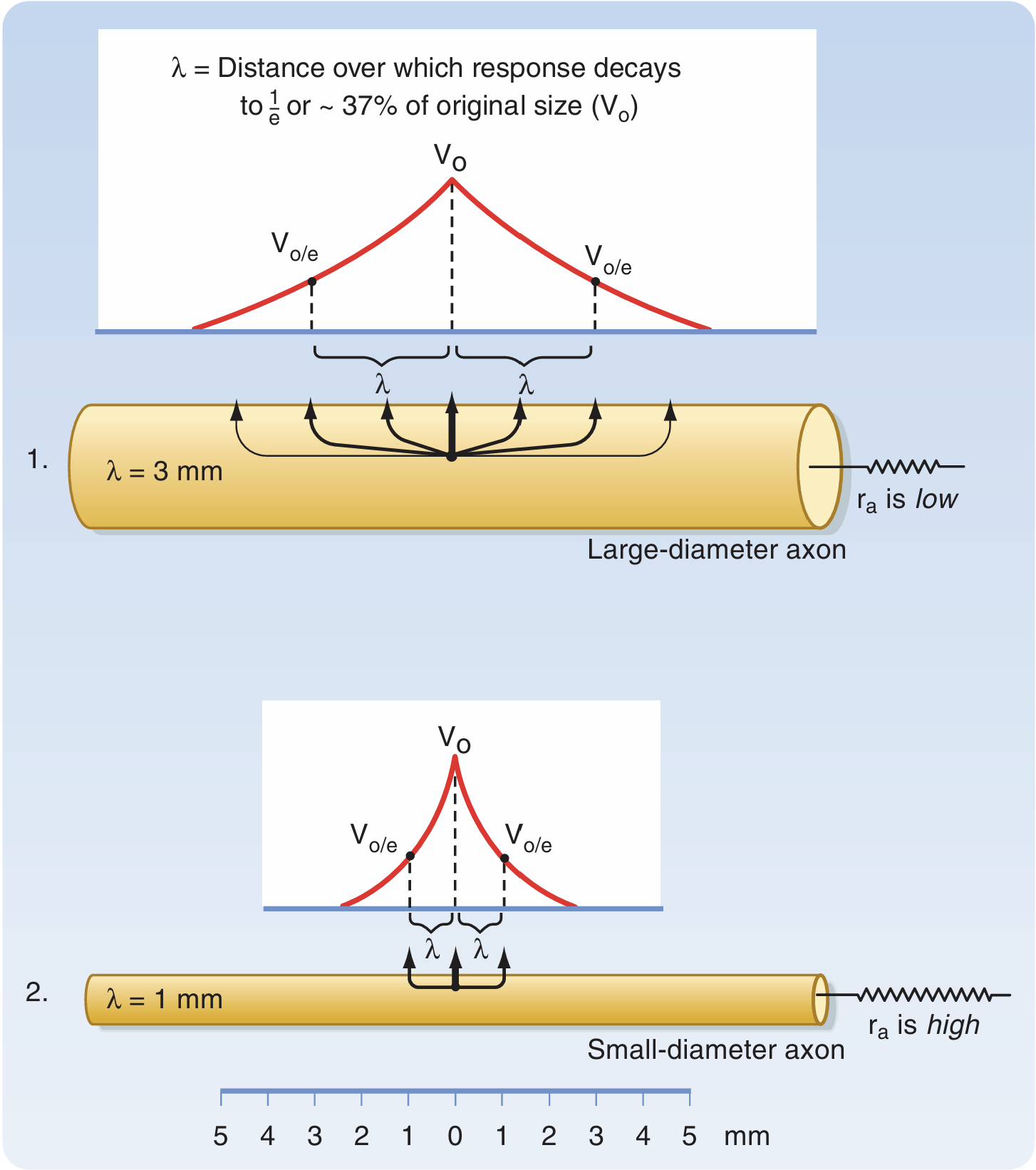 而一般考虑神经细胞去极化速率一般相同,则对于不同长度常数