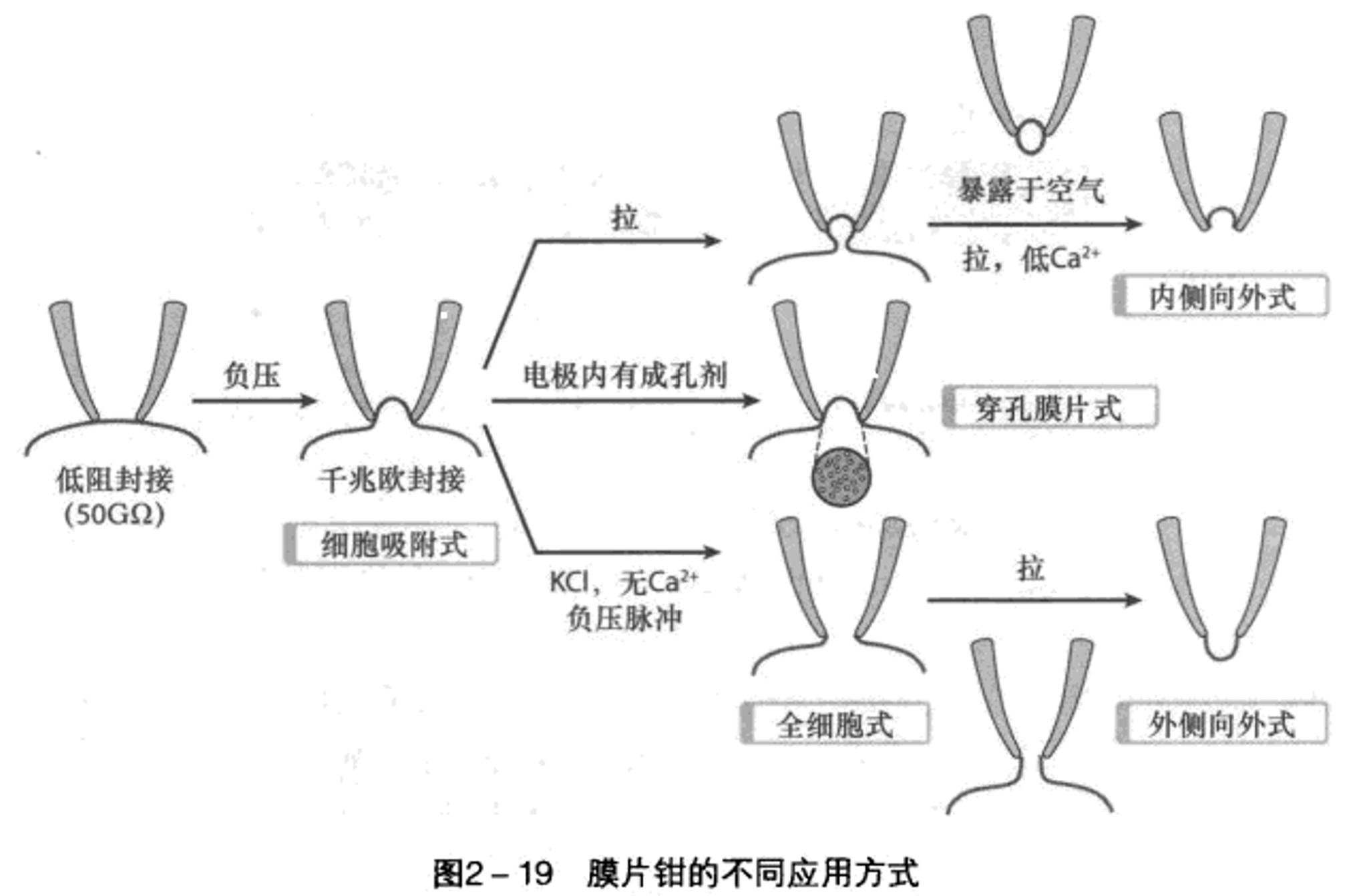 细胞吸附式:记录离子通道活动。不方便控制细胞内环境。