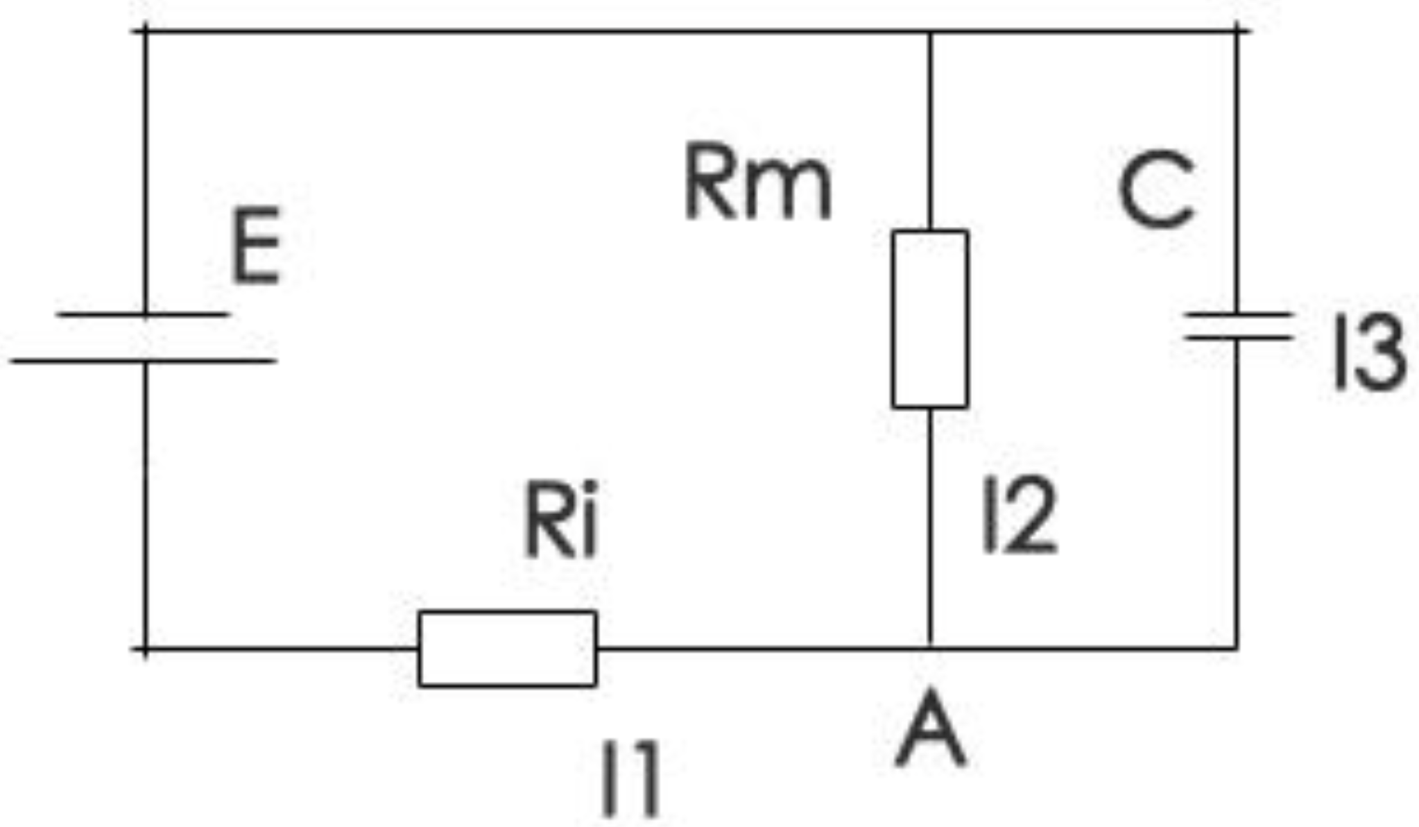 电紧张状态下,细胞膜上的被动电学信号的产生原理可以从一个简化产生的RC阻容电路来得到解释: